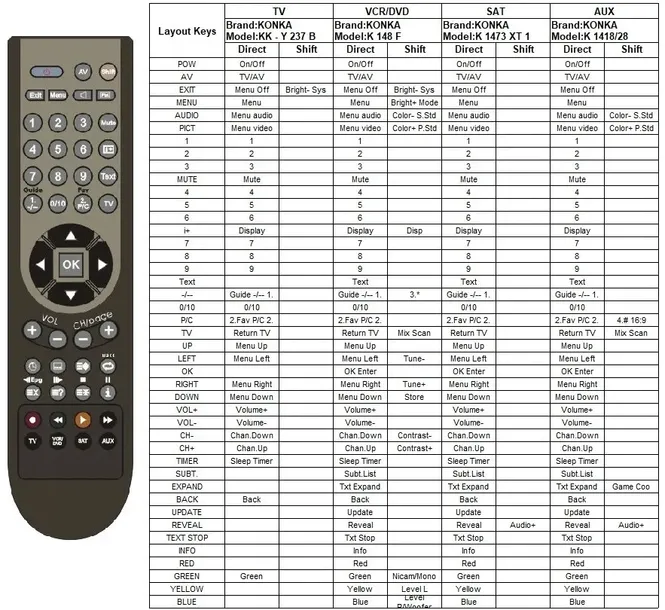 Wg specyfikacji pilot zastępuje piloty KONKA KKY237B