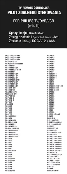 Uniwersalny - pasuje do większości modeli TV, VCR i DVR marki PHILIPS