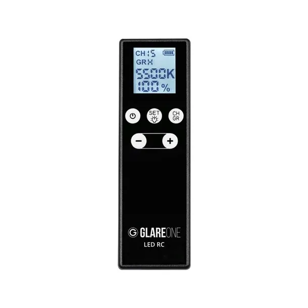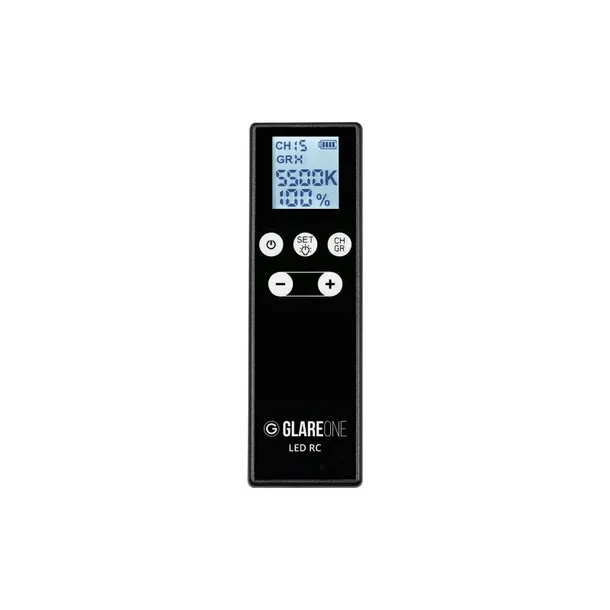 GlareOne LED RC został wyposażony w ekran LCD i zestaw przycisków zapewniających łatwy dostęp do wszystkich podstawowych parametrów oświetlenia. Urządzenie jest łatwe w użyciu i charakteryzuje się ergonomiczną konstrukcją. Pilot wyróżnia się niewielkimi rozmiarami i wagą, dzięki czemu możesz go mieć zawsze przy sobie.