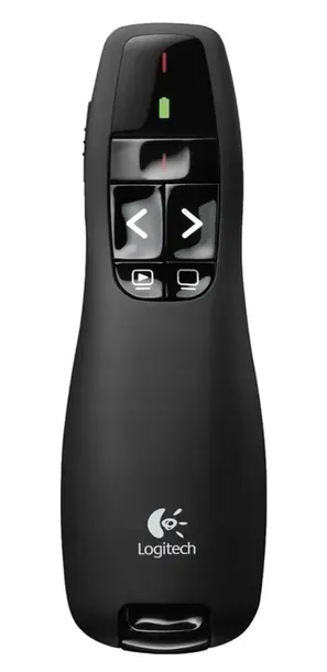 Logitech Wireless Presenter R400 to wysoce funkcjonalne urządzenie wskazujące, które zapewnia niezrównaną kontrolę podczas prezentacji. Jego intuicyjne rozmieszczenie przycisków oraz ergonomiczny, opływowy kształt gwarantują pewny chwyt i pełną kontrolę nad prezentacją.