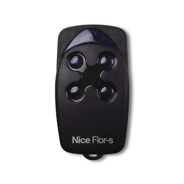 Sterowanie Flor: zasięg od 100 m do 200 m z anteną ABFKIT/ABF w terenie otwartym. Czarna obudowa i granatowe przyciski to cecha rozpoznawcza.