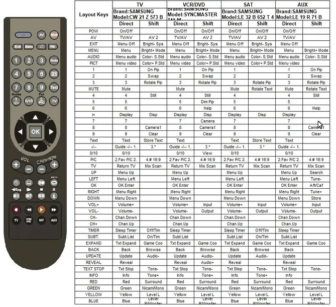 pilot zaprogramowany kodami SAMSUNG