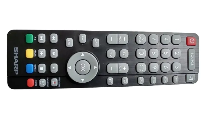 - Dzięki dedykowanym przyciskom na pilocie Sharp, możesz mieć błyskawiczny dostęp do swoich ulubionych aplikacji i kanałów.
