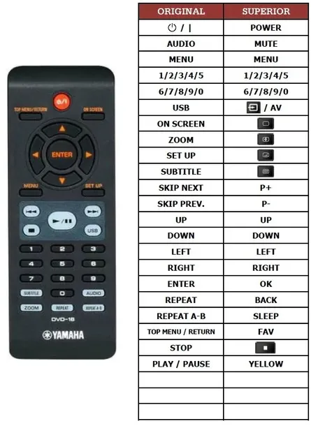 Zamiennik pilota YAMAHA DVD-16 AAX83650