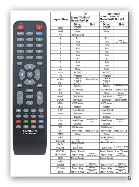 Pilot zaprogramowany kodami YAMAHA