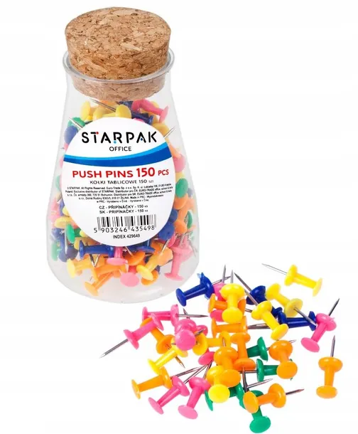 ✔️ Kolorowe kołki tablicowe w poręcznym, oryginalnym opakowaniu. Niezbędny element wyposażenia każdego biura, przydatne również w domu iw szkole. Opakowanie zawiera 150 sztuk w mixie kolorów.