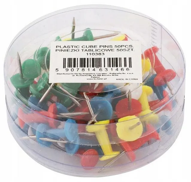 - pinezka kolorowa do tablic korkowych- w platikowym pudełku- opakowanie 50 szt.