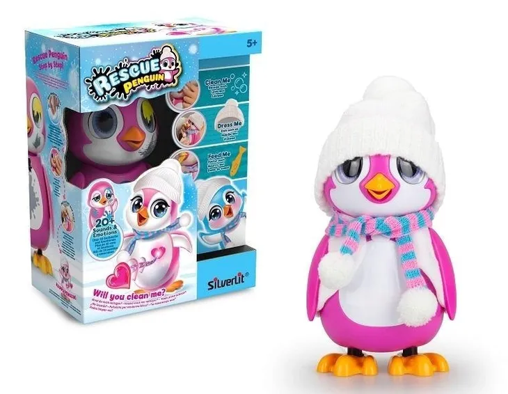 Mały pingwinek potrzebuje Twojej pomocy! Wyczyść go, ogrzej i nakarm, aby poczuł się szczęśliwy, a jego serduszko się zaczerwieniło. Zwierzątko wyraża swoje emocje, zmieniając przy tym kolor serca i wydając różne dźwięki. Pingwinek potrafi się cieszyć, być głodny, szczęśliwy, zmarznięty, smutny i śpiący. Odkryj jego potrzeby i spełnij je, wykorzystując do tego znajdujące się w zestawie akcesoria: szmatkę, zabawkową rybkę oraz ubranko.