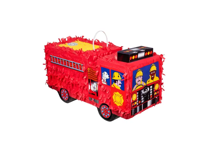 Piniata Wóz strażacki.Świetnie sprawdzi się na Urodziny lub każdą inną okazję.Piniata w kształcie wozu strażackiego. Wymiary: 43 × 24 × 18 cm.Materiał: 100% papier.
