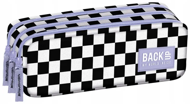 Klasyczna czarno-biała kratka przełamana fioletem suwaków i zamków. Znany i uwielbiany motyw szachownicy w zupełnie nowej, świeżej odsłonie. Ten młodzieżowy piórnik jak żaden inny wpasowuje się w panujące trendy. Trzykomorowy piórnik BackUP posiada: - duży rozmiar - trzy oddzielne komory - trzy zamki - rozmiar: 22 x 9 x 9 cm - waga: 100 g Nazwa kolekcji: Szachownica F