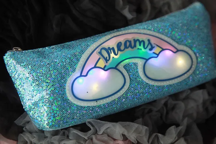 Oryginalny, pięknie mieniący się piórnik, który może również posłużyć jako kosmetyczka.