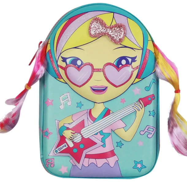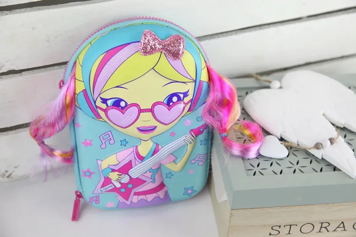 Śliczny piórnik z laleczką z tęczowymi włosami oraz brokatową kokardą, na pewno zaskoczy wszystkie koleżanki w klasie i nie tylko.Laleczka jest lekko wypukła. MUST HAVE każdej dziewczynki.