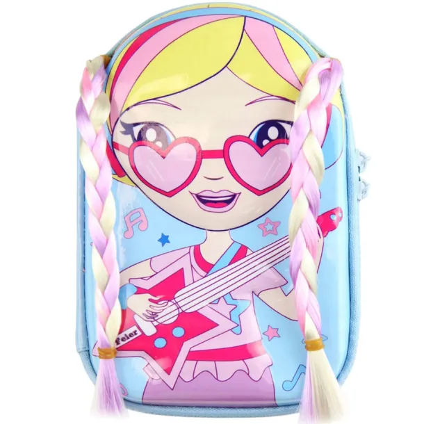 Śliczny piórnik z laleczką z tęczowymi włosami na pewno zaskoczy wszystkie koleżanki w klasie i nie tylko. Chyba jeszcze nikt nie miał piórnika z warkoczykami ☺ Laleczka jest lekko wypukła. MUST HAVE każdej dziewczynki. Po otwarciu piórnika znajdziecie pPo jednej stronie siateczka zasuwana na suwak idealna na kredki. Na drugiej stronie znajduje się wkładka z gumkami na długopisy i ołówki.