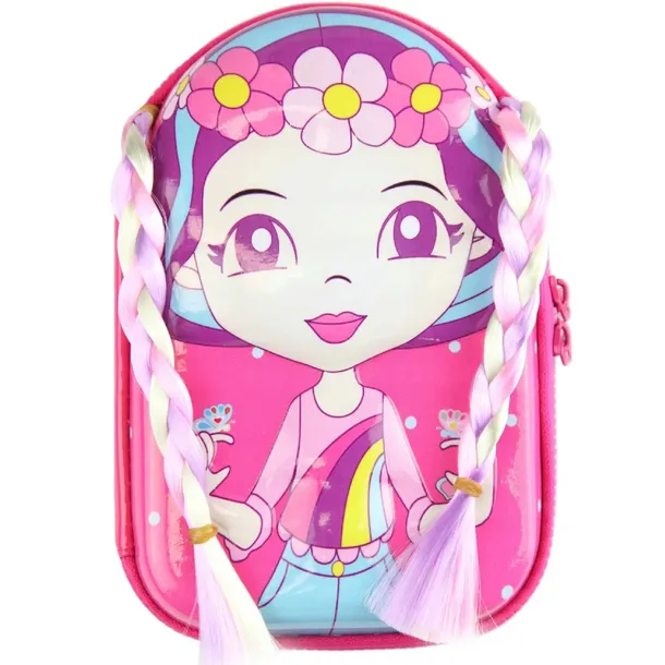 Śliczny piórnik z laleczką z tęczowymi włosami na pewno zaskoczy wszystkie koleżanki w klasie i nie tylko. Chyba jeszcze nikt nie miał piórnika z warkoczykami ☺ Laleczka jest lekko wypukła. MUST HAVE każdej dziewczynki.