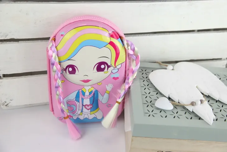 Śliczny piórnik z laleczką z tęczowymi włosami na pewno zaskoczy wszystkie koleżanki w klasie i nie tylko. Chyba jeszcze nikt nie miał piórnika z warkoczykami ☺ Laleczka jest lekko wypukła. MUST HAVE każdej dziewczynki.