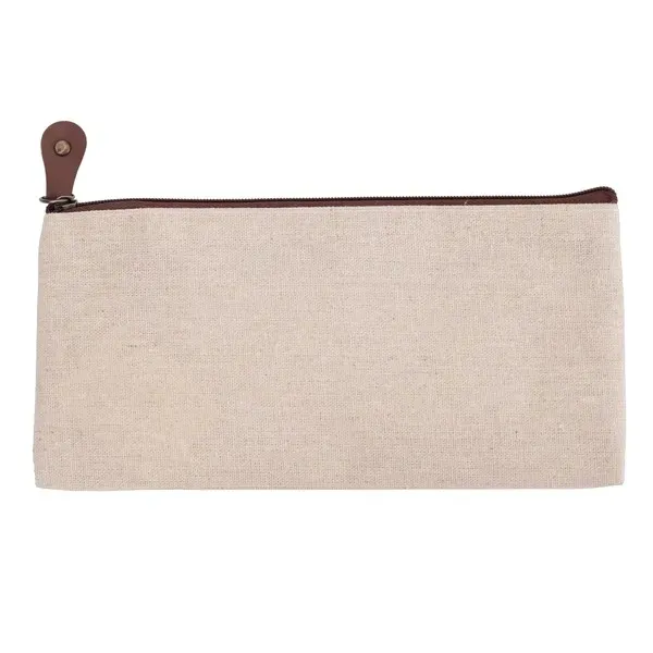 Wykonany z poliestru (52%) i lnu (48%) piórnik. Może także służyć jako kosmetyczka.