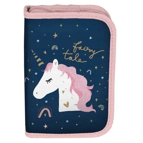 Piórnik bez wyposażenia, w środku klapka z uchwytami na przybory piśmiennicze.