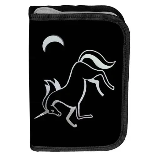 Piórnik bez wyposażenia, w środku klapka z uchwytami na przybory piśmiennicze.