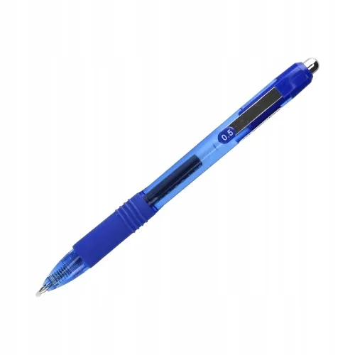 Pióro żelowe automatyczne z wymiennym wkładem. Wkład z kulką piszącą 0,5 mm i aktywnym systemem kontroli wypływu tuszu, nie plami ubrań, grubość linii pisania 0,3 mm. Pióro posiada transparentną obudowę, niełamliwy metalowy klips, gumowy, ergonomiczny uchwyt.<br/>- dostępne w 4 podstawowych kolorach<br/>- wymienne wkłady LE 028<br/>- niebieskie