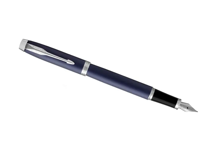 Korpus oraz skuwkę pióra wiecznego Parker IM Core Blue CT wykonano z mosiądzu pokrytego matowym, niebieskim lakierem. W serii IM po transformacji wyraźnie zmienił się kształt stalówki oraz uchwyt, który obecnie wykonany jest z połyskującego, czarnego materiału polimerowego. Całość wieńczą wykończenia platerowane chromem.