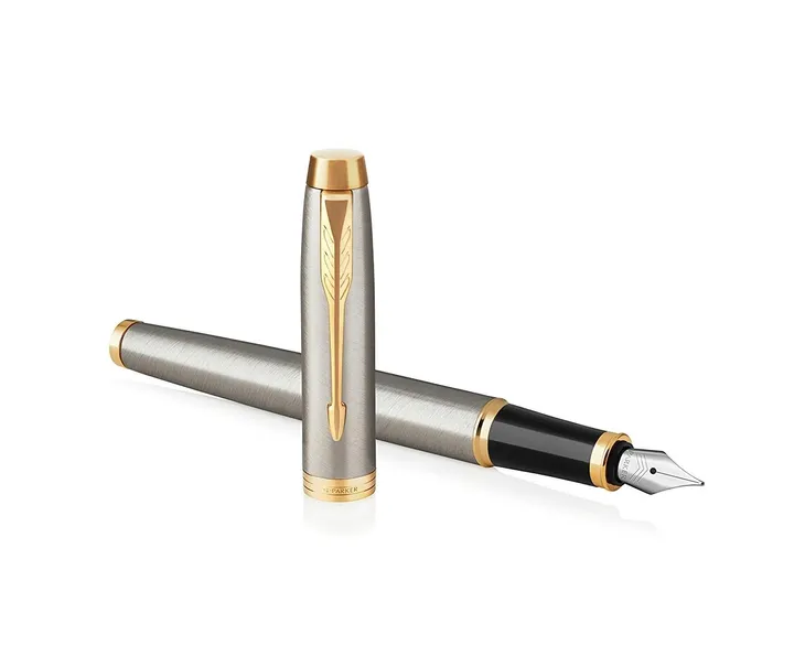 Korpus oraz skuwkę pióra wiecznego Parker IM Core Brushed Metal GT wykonano z mosiądzu pokrytego lakierem o kolorze szczotkowanej stali. W serii IM po transformacji wyraźnie zmienił się kształt stalówki oraz uchwyt, który obecnie wykonany jest z połyskującego, czarnego materiału polimerowego. Całość wieńczą wykończenia platerowane złotem.