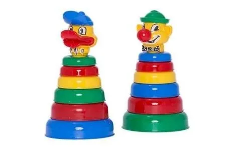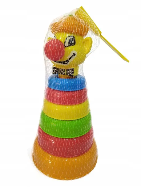 Piramida to podstawowa zabawka edukacyjna, ucząca umiejętności wyznaczania konsekwentnych serii, składająca się z sześciu krążków, które dziecko układa jeden na drugim. Wesołym akcentem jest główka w kształcie Pajacyka lub Kaczorka. Zabawka przeznaczona dla dzieci od 10 miesiąca życia, rozwija zdolności manualne.