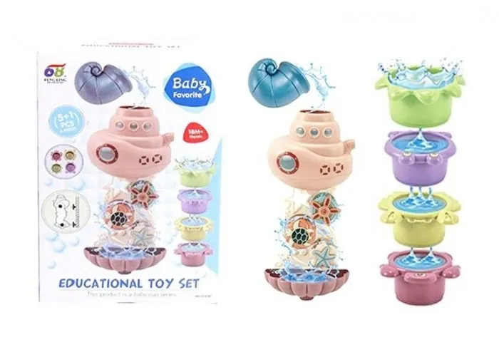 Zabawka do kąpieli dla mniejszych dzieci. Za pomocą małej muszelki w zestawie dziecko wprowadza wodę do łodzi podwodnej, gdzie następnie przez kołowrotki woda płynie dalej do muszelki. Zabawka rozwija u dziecka logiczne myślenie, poprawia koordynację ręka-oko, uczy rozpoznawania kształtów. Zabawka przeznaczona dla dzieci od 18 miesiąca życia. Produkt zapakowany w kartonowe opakowanie z okienkiem.Podane wymiary stanowią wymiar opakowania.