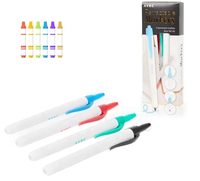Odkryj wygodę i precyzję pisania z zestawem wysuwanych kolorowych permanentnych markerów na klik marki Avec!