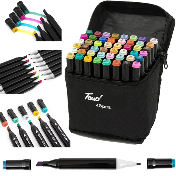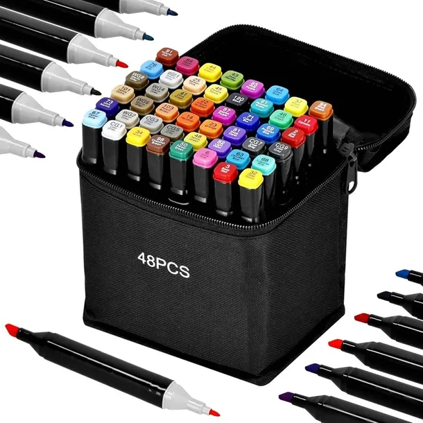 Zestaw 48 dwustronnych markerów w wyrazistych kolorach pobudzi wyobraźnię każdego początkującego i bardziej zaawansowanego artysty. Idealnie sprawdzą się do prostych rysunków dla dzieci i dorosłych ale też do profesjonalnych projektów architektonicznych czy modowych.