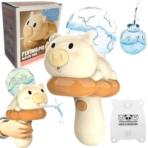 Pistolet na wodę w kształcie uroczej świnki na chmurce to podstawowa zabawka podczas letnich przygód na świeżym powietrzu. Niezastąpiony zarówno na podwórku, basenie, jak i podczas kąpieli zapewnia niekończącą się dawkę radości i ochłody podczas upalnych dni.