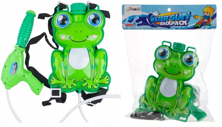 Plecaczek w kształcie żabki, piękna kolorystyka, duża pojemność zbiornika na wodę, a także duża donośność sprawią, że pistolet stanie się doskonałym towarzyszem dziecięcych zabaw. Wystarczy kilkakrotnie przesunąć rączkę pompki by zabawka stała się gotowa do użycia. Odkręcany, duży pojemnik należy napełnić wodą - zapewni wiele minut dobrej zabawy. Zbiornik posiada paski, które można regulować.