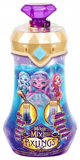 Pixlings lalka Syrena- niebieska Stwórz magiczny eliksir i wyczaruj swoją własną laleczkę Pixlings od Magic Mixies. Zapewnij swojemu dziecku ekscytujący element zaskoczenia, dzięki któremu zabawa wzniesie się na zupełnie nowy poziom. W serii Pixlings znajduje się aż 5 laleczek, a do odkrycia każdej z nich potrzebne są inne składniki. Każda lalka ma 16 cm wysokości i 7 ruchomych punktów, dzięki itnieje możliwość ustawienia jej w różnych pozach oraz wspaniałe, długie włosy, które można czesać. W zestawie: 1 specjalna butelka,1 lalka z długimi włosami,1 zestaw składników (jednorazowego użytku),1 instrukcja obsługi,1 przewodnik dla kolekcjonerów. Zabawka nie wymaga bateriiWiek: 5+