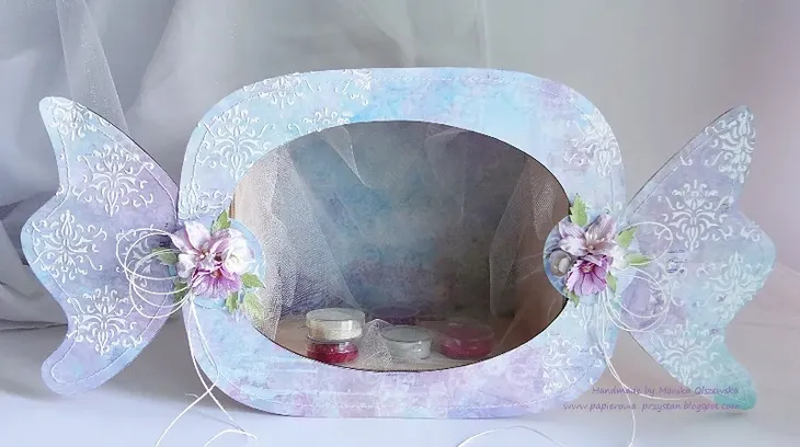 Dekor zewnętrzny można samodzielnie ozdobić i przykleić do skrzyneczki (najlepiej klejem do drewna).