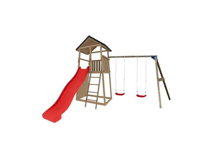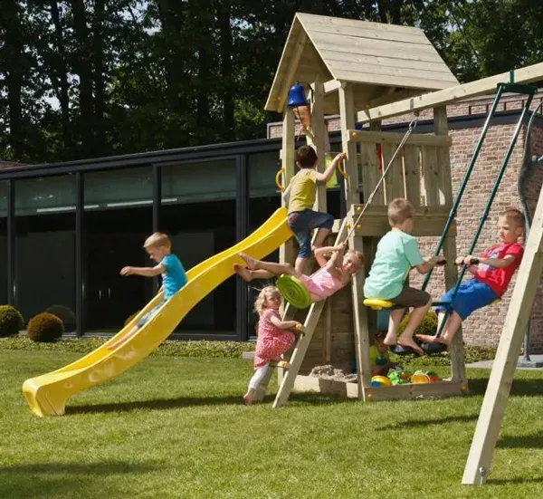 - 2 huśtawek pojedynczych, Domku, Piaskownicy, Ścianki wspinaczkowej
