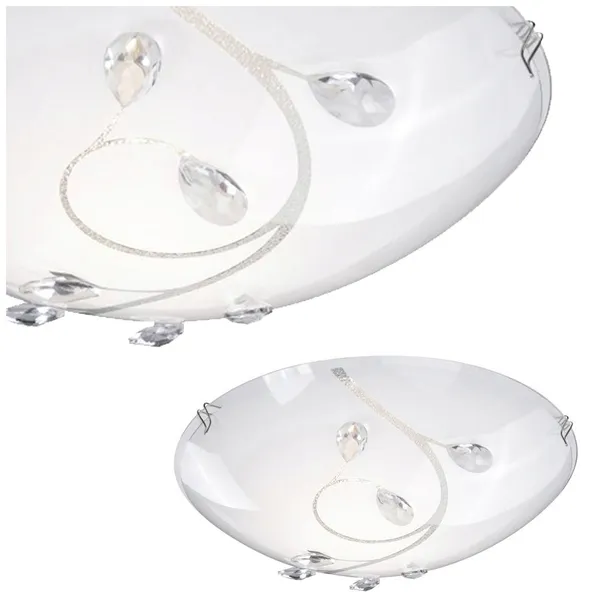 Plafon satynowy, szkło opalizowane, Kryształy K5 czyste, szer:250, wys:85mm, nie zaw. 1xE27 ILLU 60W 230V