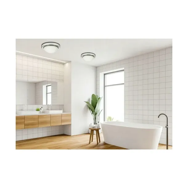 Plafon marki Candellux model: 11-96916 jest przedstawicielem serii RODA. Materiał z jakiego lampa została wyprodukowana to: klosz szklany, podstawa metalowa. Źródłem światła jest żarówka 1xE27 (brak żarówek w zestawie). Opis producencki produktu: plafon bryzgoszczelny; eleganckie połączenie metalu i szkła; biały klosz gięty otoczony metalowym ringiem; idealny na przedpokój, do kuchni i łazienki; dostępny w dwóch wersjach kolorystycznych podstaw (chrom i satyna) i dwóch rozmiarach, również IP20 Wymiary: wysokość: 11 cm, szerokość: 27,5 cm, głębokość: 27,5 cm. Waga: 1 kg.