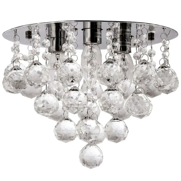 Dostępna w sklepie =mlamp= oprawa sufitowa będzie świetnym dopełnieniem dla każdego wnętrza utrzymanego w stylu glamour. Kryształki zwieszone z plafonu dodają całości dekoracyjnego charakteru. Ozdobne kamienie pięknie odbiją światło tworząc wyjątkowy efekt wizualny. Chromowana podstawa lampy wieńczy szykowną konstrukcję. Oświetlona w ten sposób przestrzeń nabierze także niebywałej elegancji. Znakomicie sprawdzi się w salonach w Twoim domu, równie dobrze zaprezentuje się w pokojach hotelowych lub w gustownie zaaranżowanych restauracjach.