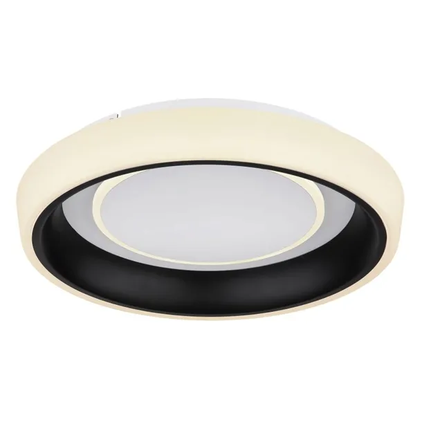 Plafon LED, metal czarny, aktyl czarny, opalzowany, ściemniacz sterowany z wył ściennego, zmiana barwy, pamięć ust, ośw nocne, zdalne sterowanie, ?: 500mm, Wys: 95mm, zaw. LED 50W 230V, 252-6700lm źródło, 130-3300lm na wyjściu, CCT 3000-6500K