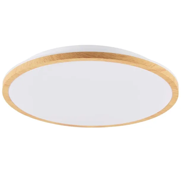 Okrągły Plafon LED WOODY w kolorze drewna i średnicy 38cm to lampa z wbudowanym źródłem światła LED, które jest bardzo energooszczędne. Lampa o mocy 24W emituje światło o neutralnej, nieoślepiającej barwie, generując strumień świetlny na poziomie aż 2600 lm.