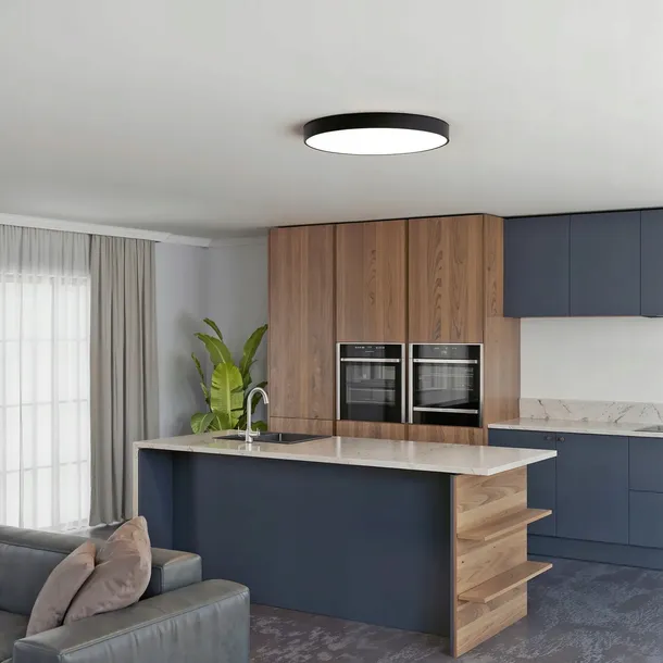 Dzięki eleganckiej czarnej obudowie oraz wysokiej wydajności świetlnej, plafon łączy minimalistyczny design z praktycznym oświetleniem, które sprawdzi się w każdym wnętrzu.