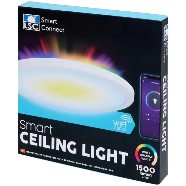 Inteligentnie oświetl swoją przestrzeń za pomocą lampy sufitowej LSC Smart Connect! Dostosuj kolor i jasność za pomocą smartfona, wybierz ciepłe odcienie lub tęczę kolorów RGB i kontroluj wszystko za pomocą głosu przy użyciu Asystenta Google lub Alexy. Nastrojowo i sprytnie!