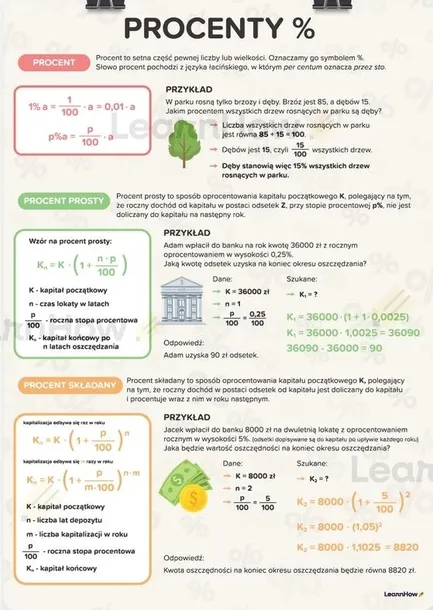 Świetny sposób na przypomnienie definicji i przykładów rodzajów procentów.