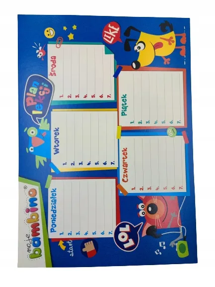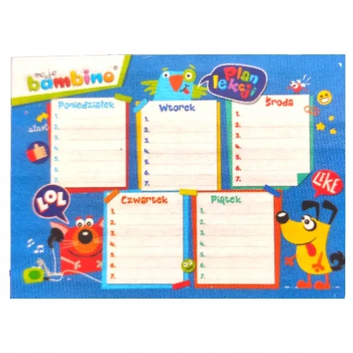 - Szkolny plan lekcji od firmy Bambino jest niezbędnym elementem każdej wyprawki szkolnej.