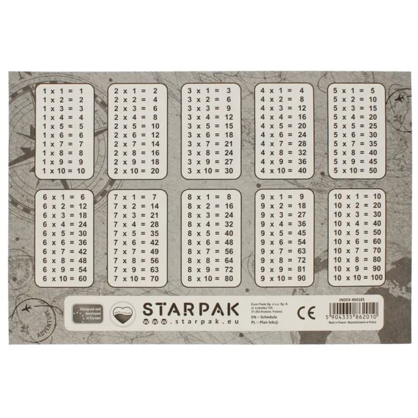 minimalistyczny PLAN LEKCJI z tabliczką mnożenia A5 ZESTAW 25 sztuk STARPAK