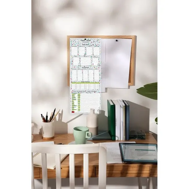Planer to tygodniowy rozbudowany planer na zapisywanie planu lekcji, obowiązków i zajęć dodatkowych oraz do planowania popularnych. Wymiary całkowite na płasko: 50.5 x 21.0 cm Wymiar po złożeniu w piramidkę: 15.0 x 21.0 cm