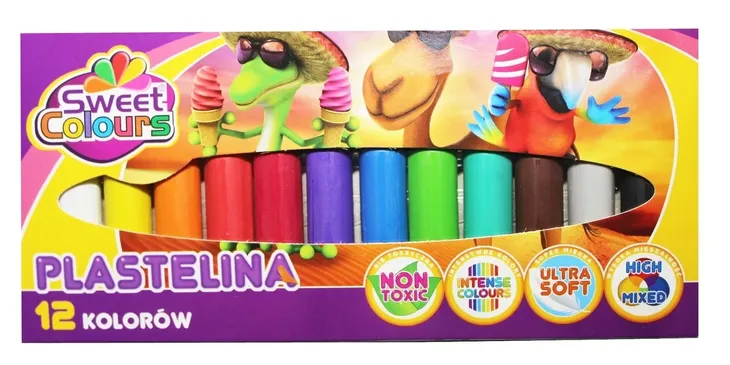 Plastelina 12 kolorów, bezpieczna dla dzieci, intensywne kolory, super miękka, wysoka mieszalność.
