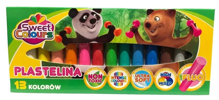 Plastelina 13 kolorów, bezpieczna dla dzieci, intensywne kolory, super miękka, wysoka mieszalność.