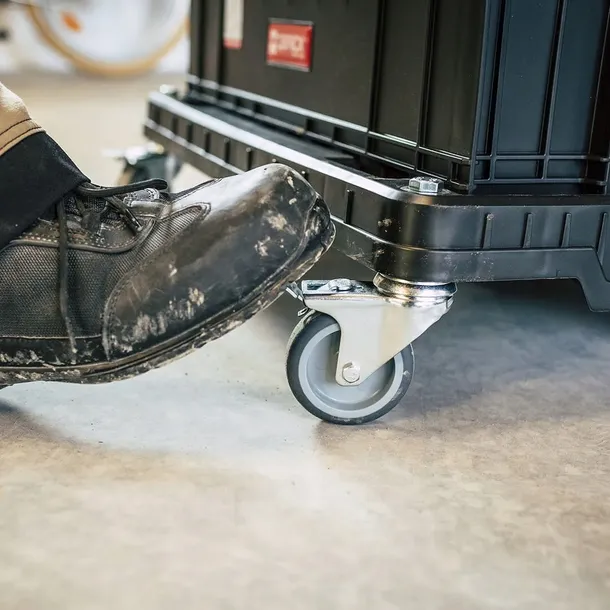 - Metalowe koła obrotowe wyposażone w hamulec, zapewniają doskonałą zwrotność oraz zabezpieczają cały zestaw przed niepożądanym ruchem.