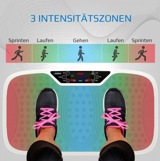 Dzięki wydajnej i kompaktowej platformie wibracyjnej VPX300 VITAL TRAINER firmy Kinetic Sports możesz w mgnieniu oka poprawić budowę mięśni, koordynację i kondycję. Trzy strefy treningowe pozwalają na indywidualne dostosowanie treningu poprzez pozycję nóg.