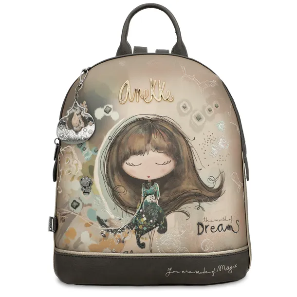 Plecak damski Anekke, mały z ozdobną grafiką z 1 komorą zamykany na zamek, kolorowy, 41705-295